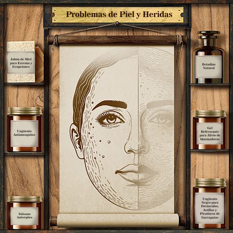 Estos remedios ayudan con curación lenta de heridas, circulación pobre a tejido dañado, cortes, raspaduras, quemaduras, inflamación, enrojecimiento, hinchazón, cicatrices, piel áspera, picazón por eczema o psoriasis, acné, infecciones de piel, manchas persistentes, quemaduras solares, erupciones, piel agrietada y sequedad de piel.