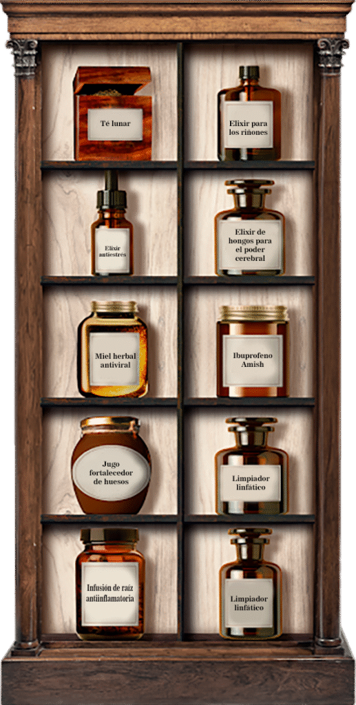 Aquí hay algunos de los remedios que encontrarás en este estante: